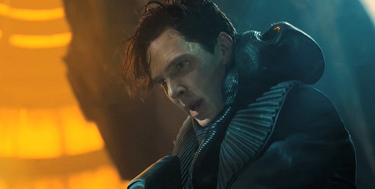 The villain, John Harrison (Benedict Cumberbatch), fighting against his adversaries who are out to kill him.