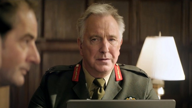 Lieutenant General Frank Benson (Alan Rickman) listening to the arguments for and against launching a drone strike, while waiting for permission to launch it.