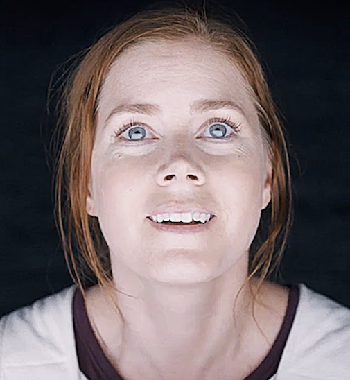 Louise (Amy Adams) looking up in awe at the aliens. Her big blue eyes are so expressive and hint at a plethora of emotions running through her to add depth to her character.