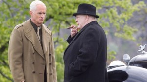 Winston, smoking a cigar, lectures an unimpressed-looking General Dwight D. Eisenhower (John Slattery), who was the Supreme Head of the American (and Allied) forces in Europe during WWII. He clashed with Churchill often as the war went on.